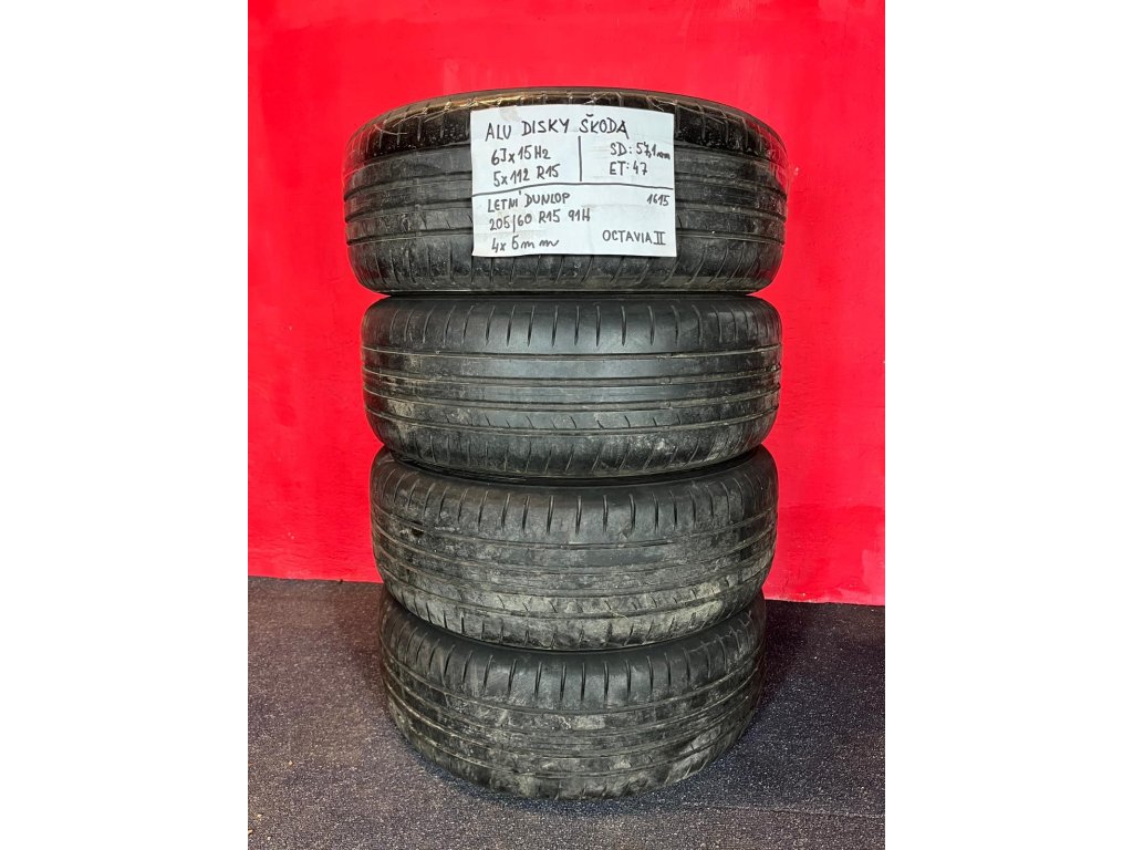 ALU disky 5x112 R15 Škoda 6Jx15H2 ET 47 s letními pneu 205/60 R15