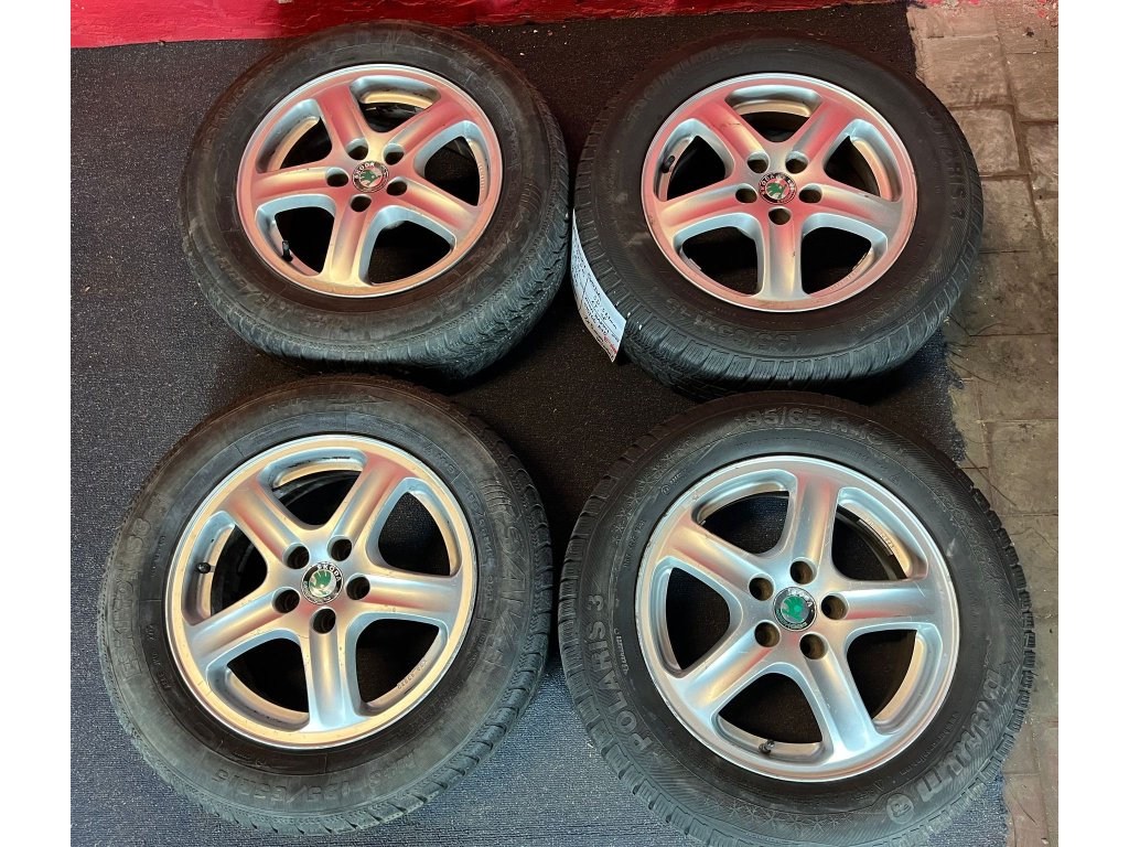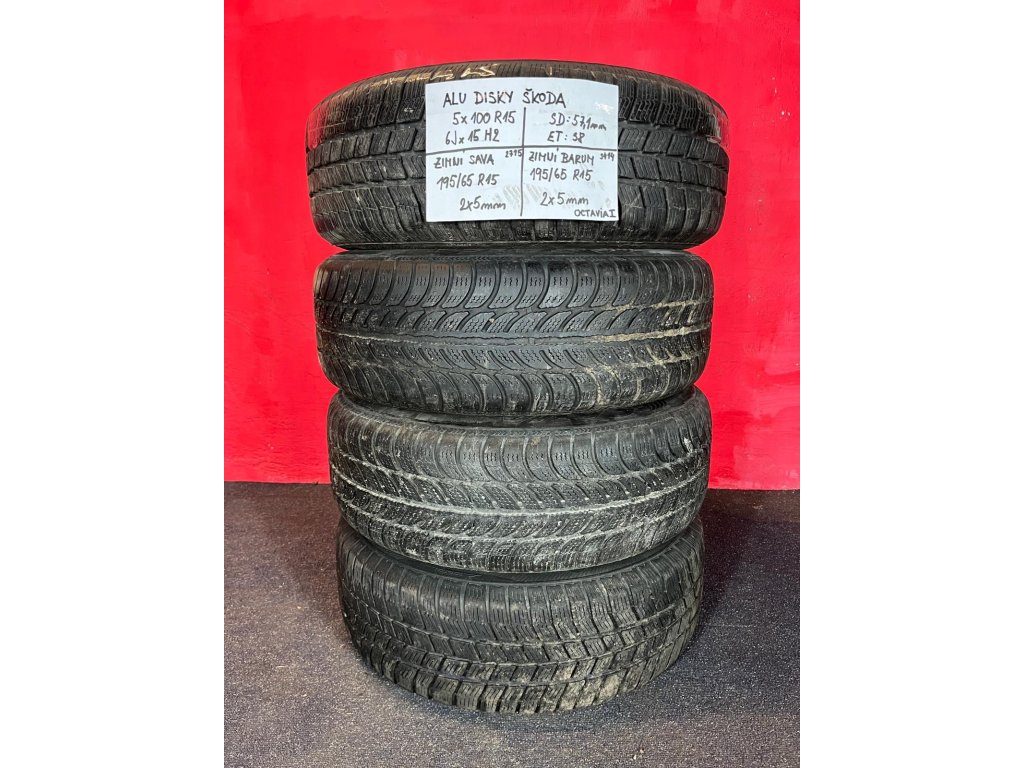 ALU disky Škoda 5x100 R15 6Jx15H2 ET 38 se zimními pneu 195/65 R15