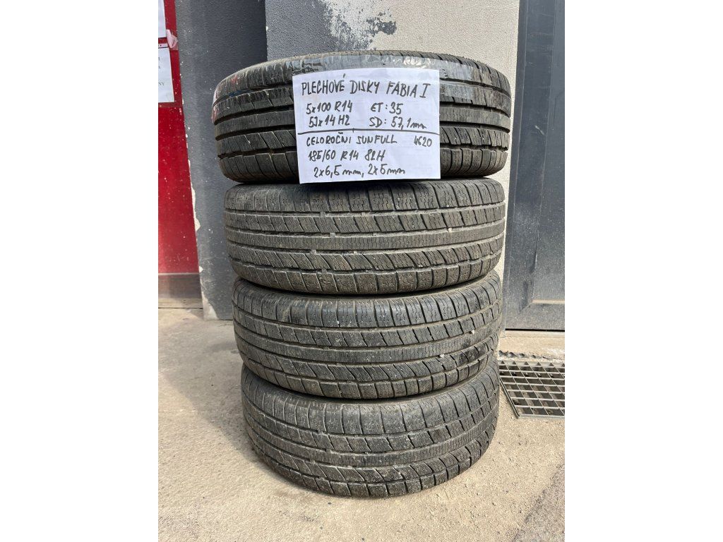 Plechové disky 5x100 R14 Fabia I, 5Jx14H2 ET 35 s celoročními pneu 185/60 R14