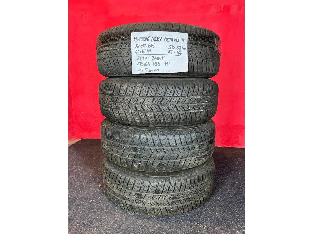Plechové disky Škoda Octavia II 5x112 R15 6Jx15H2 ET 47 se zimními pneu 195/65 R15