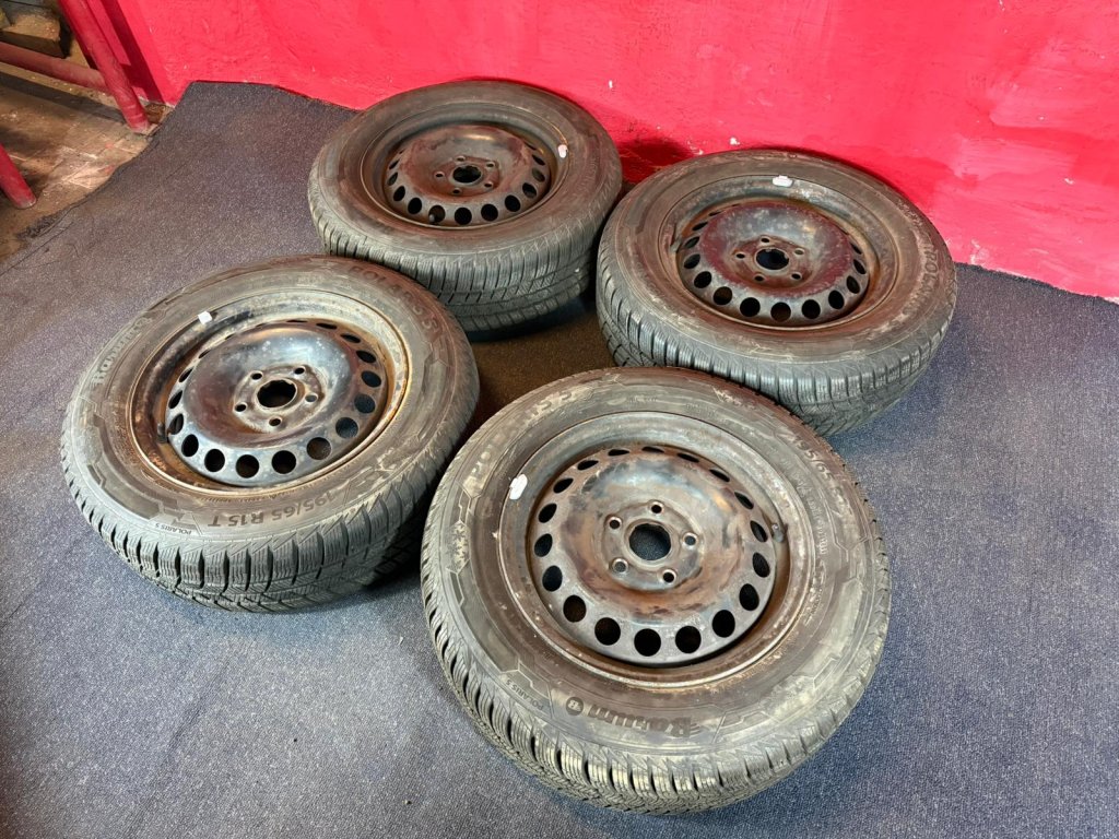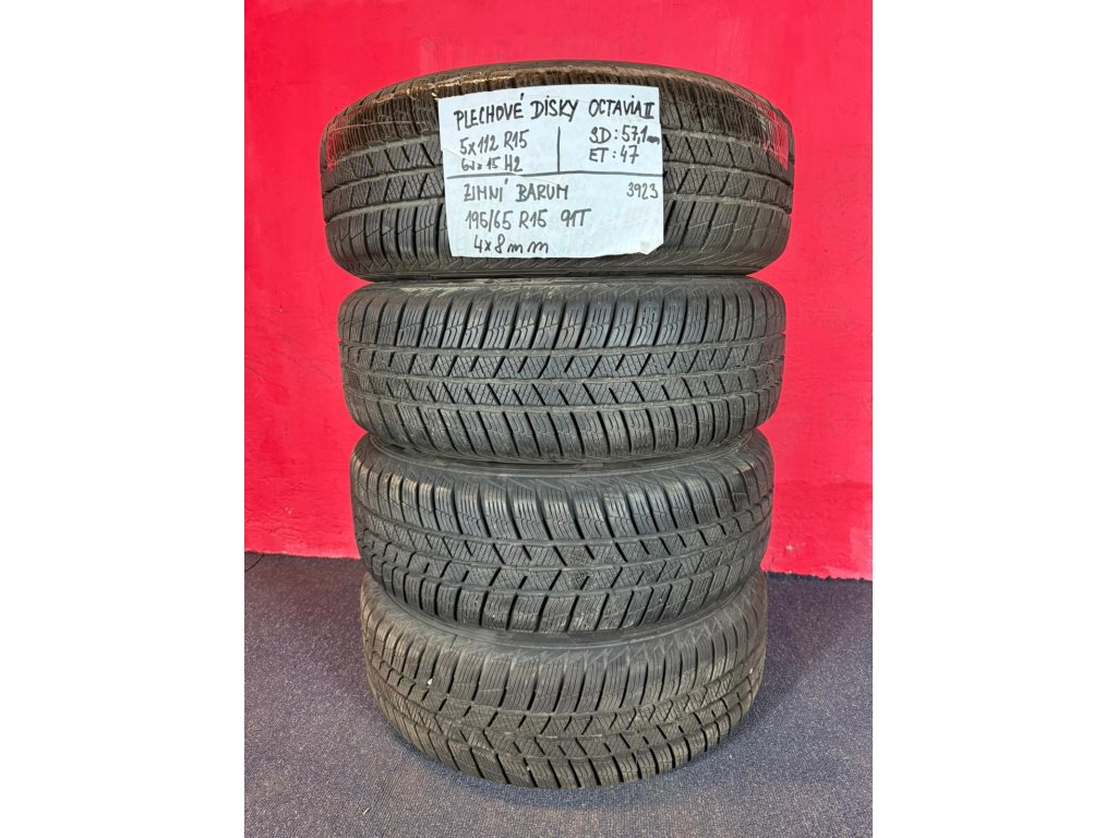 Plechové disky 5x112 R15 6Jx15H2 Octavia II ET 47 se zimními pneu 195/65 R15