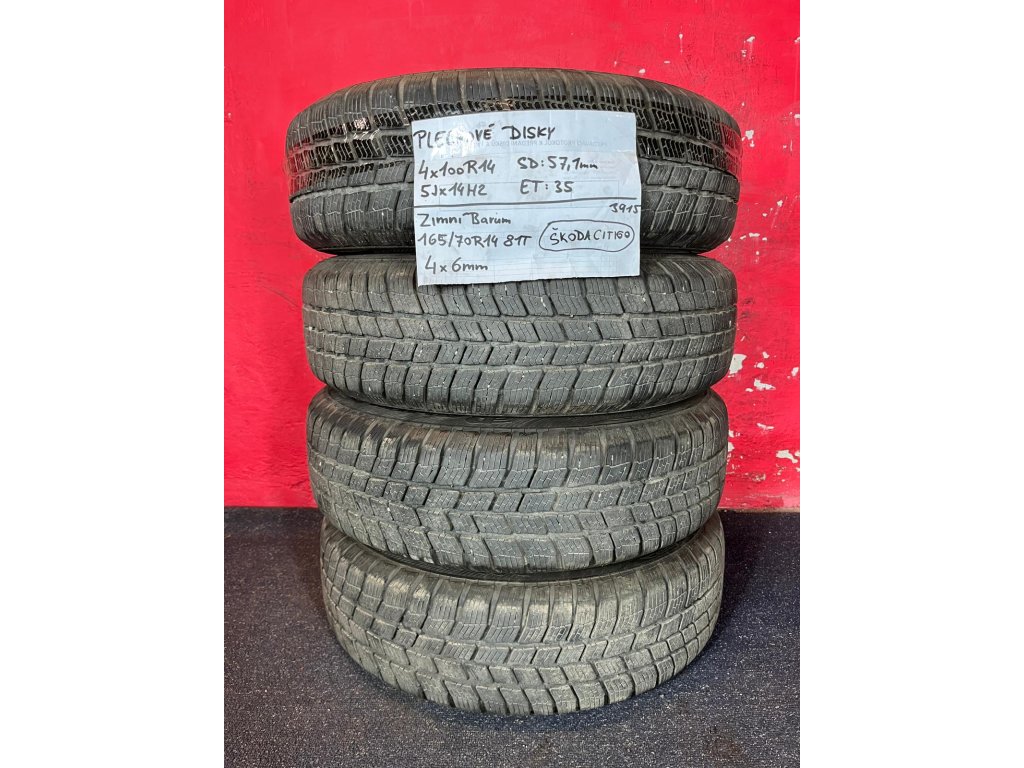 Plechové disky Škoda Citigo 4x100 R14 5Jx14H2 ET 35 se zimními pneu 165/70 R14