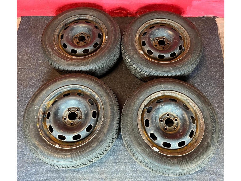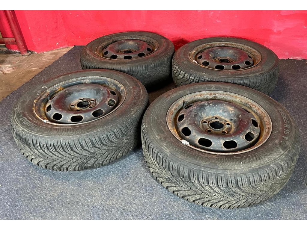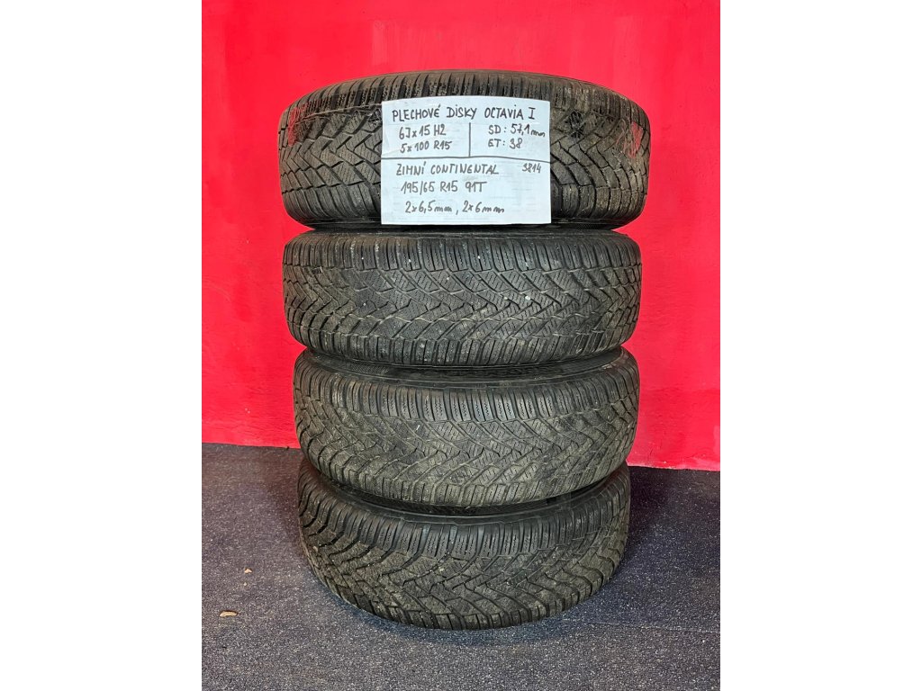 Plechové disky Škoda Octavia I 5x100 R15 6Jx15H2 ET 38 s zimními pneu 195/65 R15 Continental