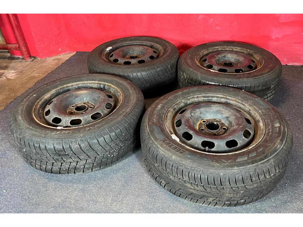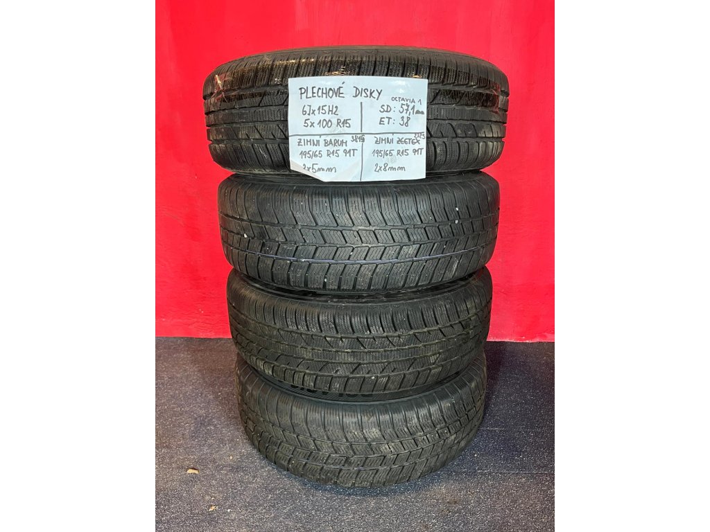 Plechové disky Škoda Octavia I 5x100 R15 6Jx15H2 ET 38 se zimními pneu 195/65 R15 Barum